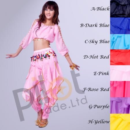 Bollywood Indian Dress Belly Dance Costume Suit Long Sleeve Lantern Top Tribal Gold Wavy Harem Pants 8 Colors