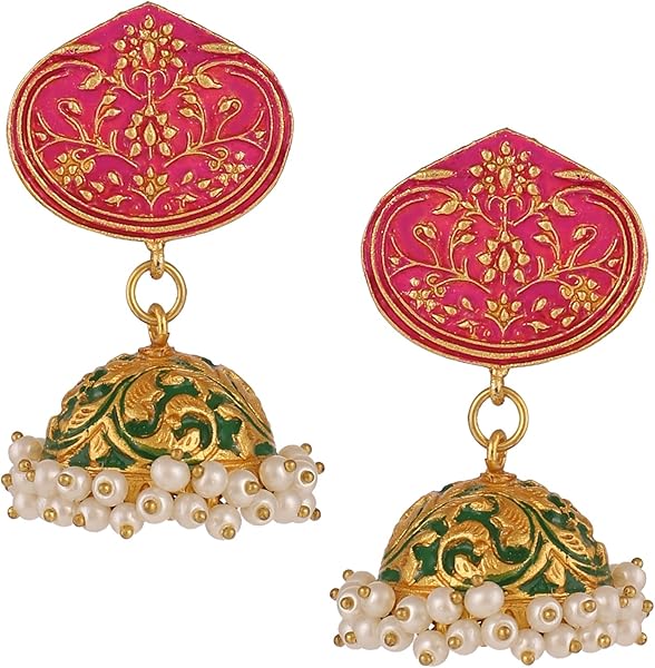 Adiva Women S Meenakari South India Bollywood Jhumka Earring Faux Polki White